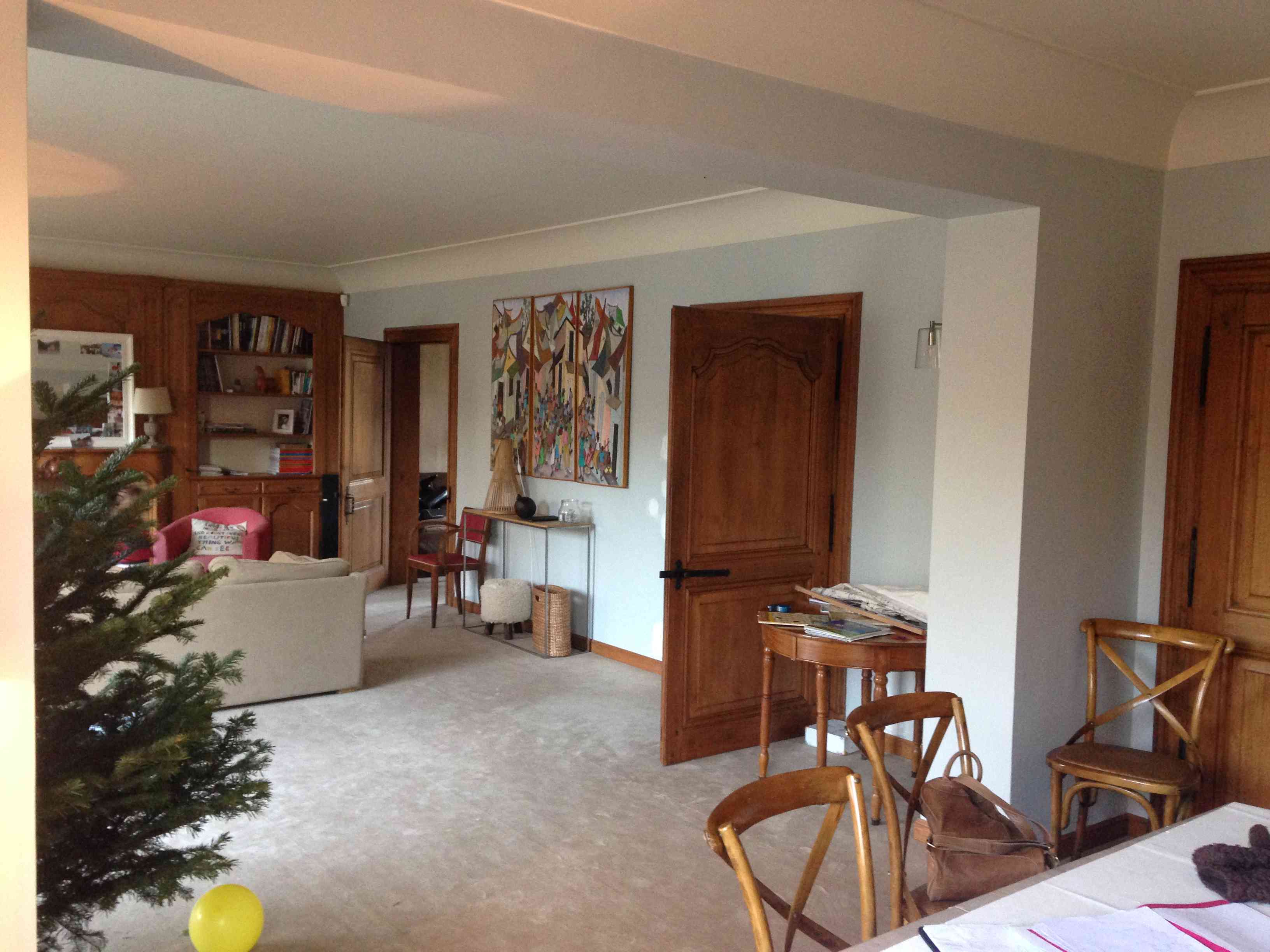 particuliersAu rez de chaussée de cette maison, mes clients souhaitaient retrouver un peu d’intimité dans la salle à manger ouverte sur le salon. Une double porte coulissante vitrée a été créée, permettant la séparation des 2 espaces ; des niches ont été intégrées à la cloison pour l’habiller. La cuisine, assez étroite a été ouverte sur la salle à manger faisant circuler la lumière entre les deux espaces tout en créant une zone bar conviviale.