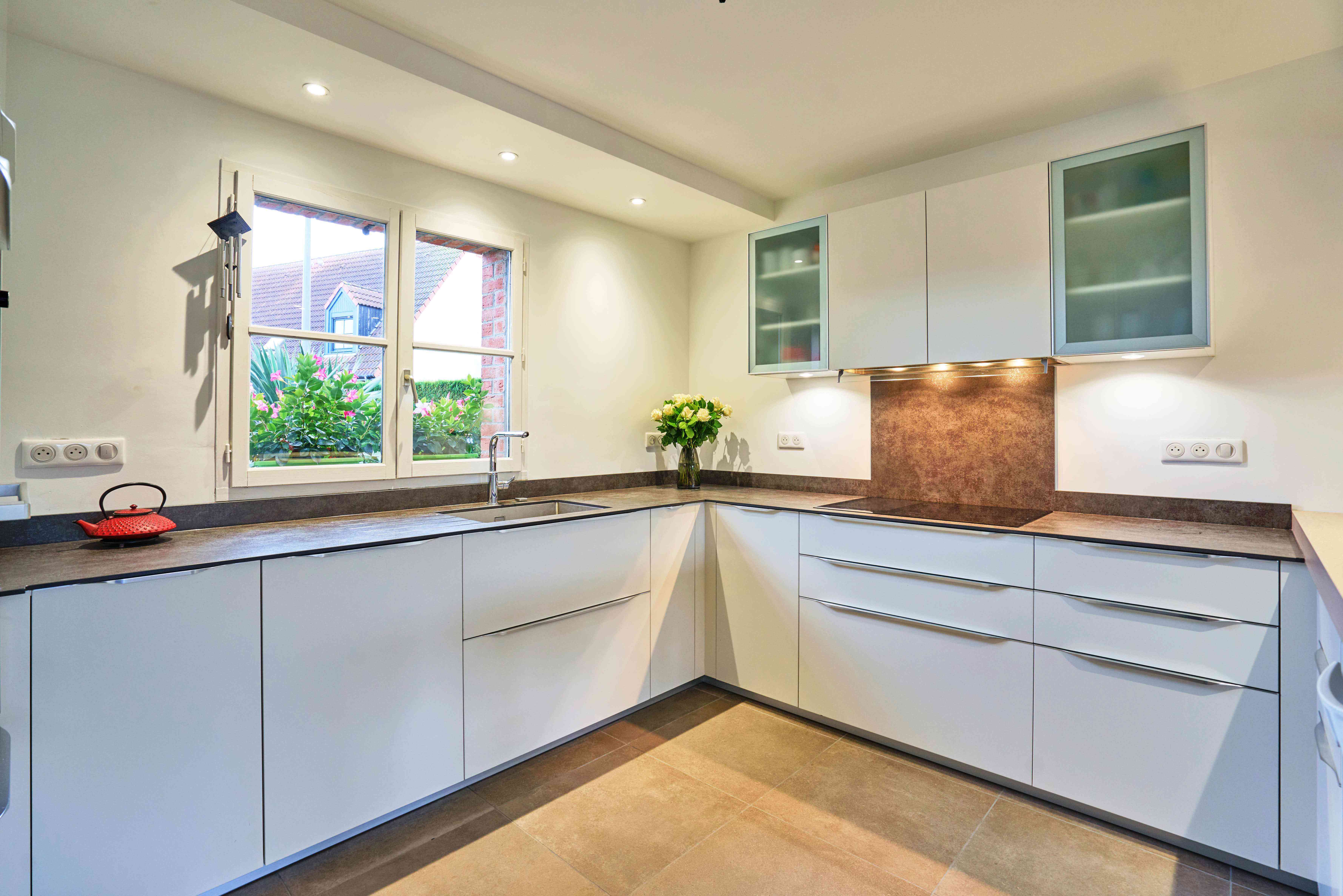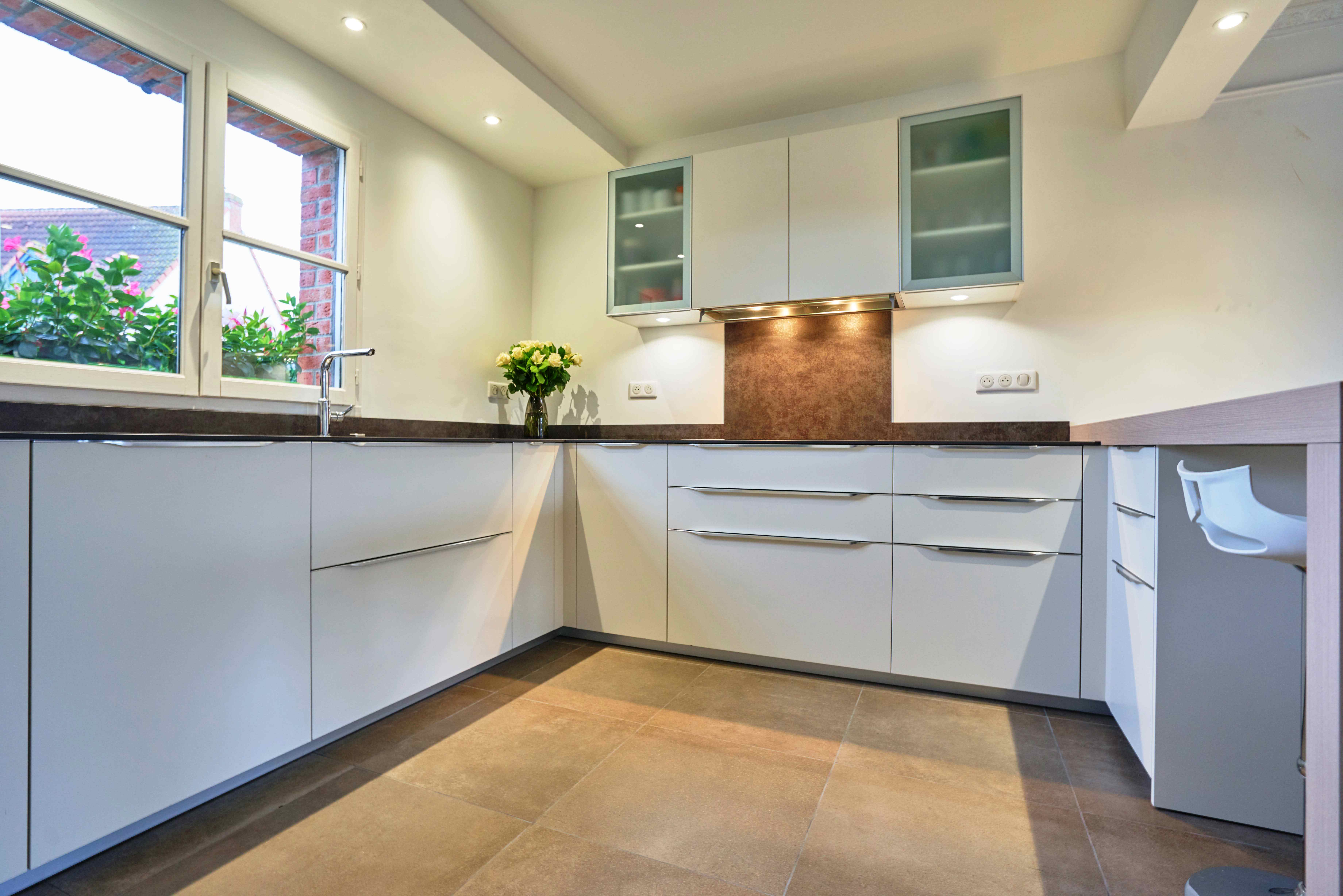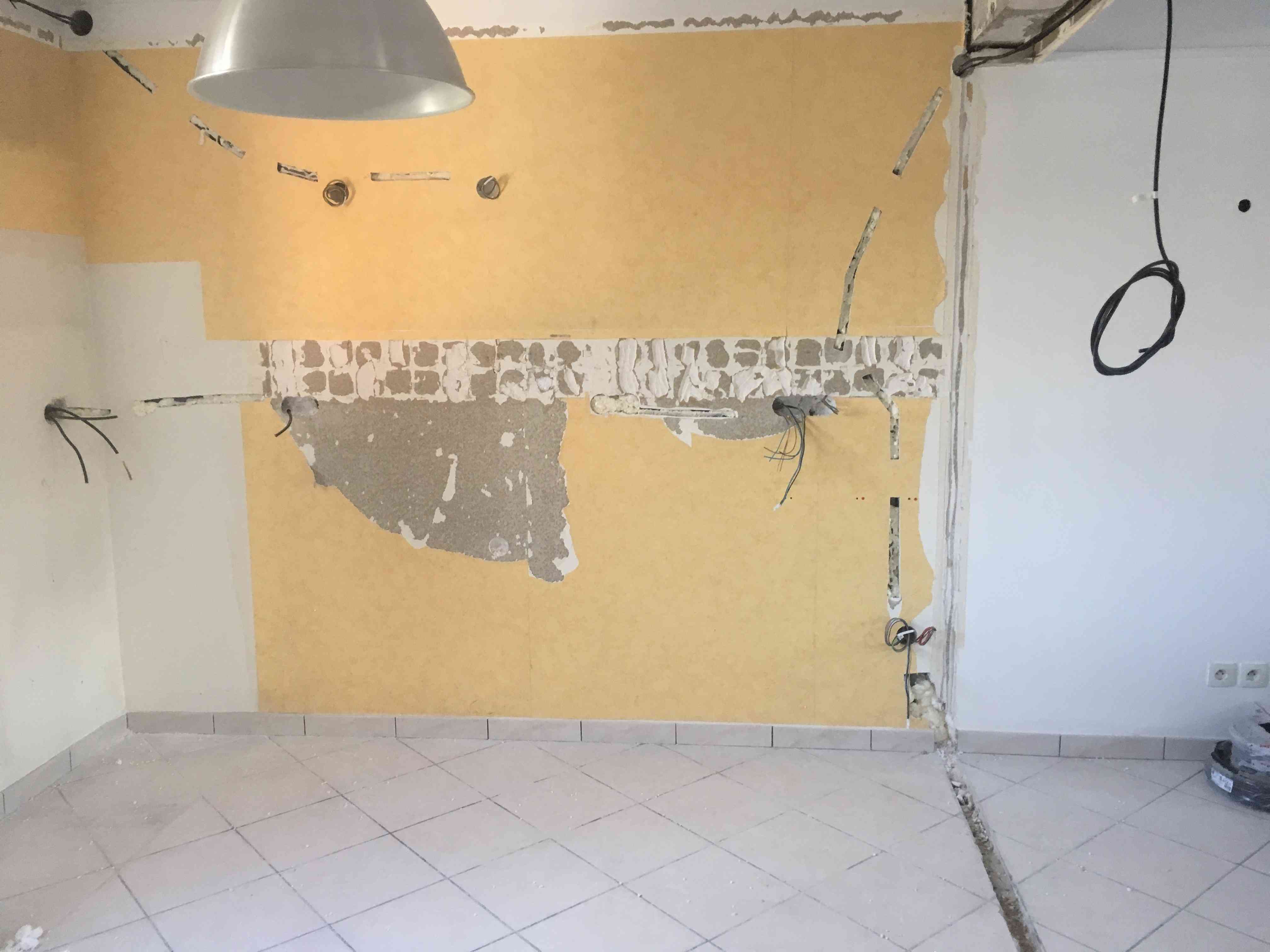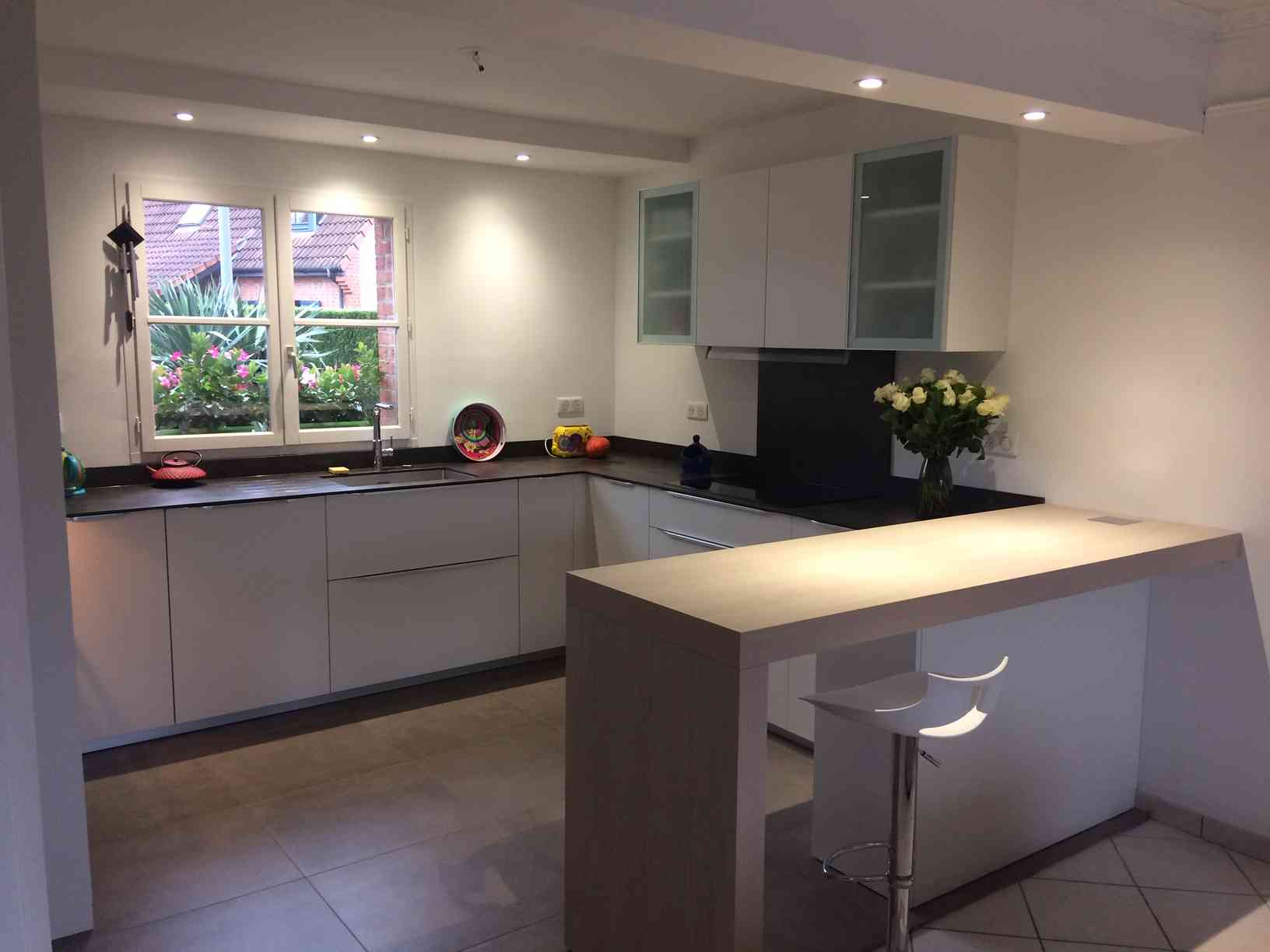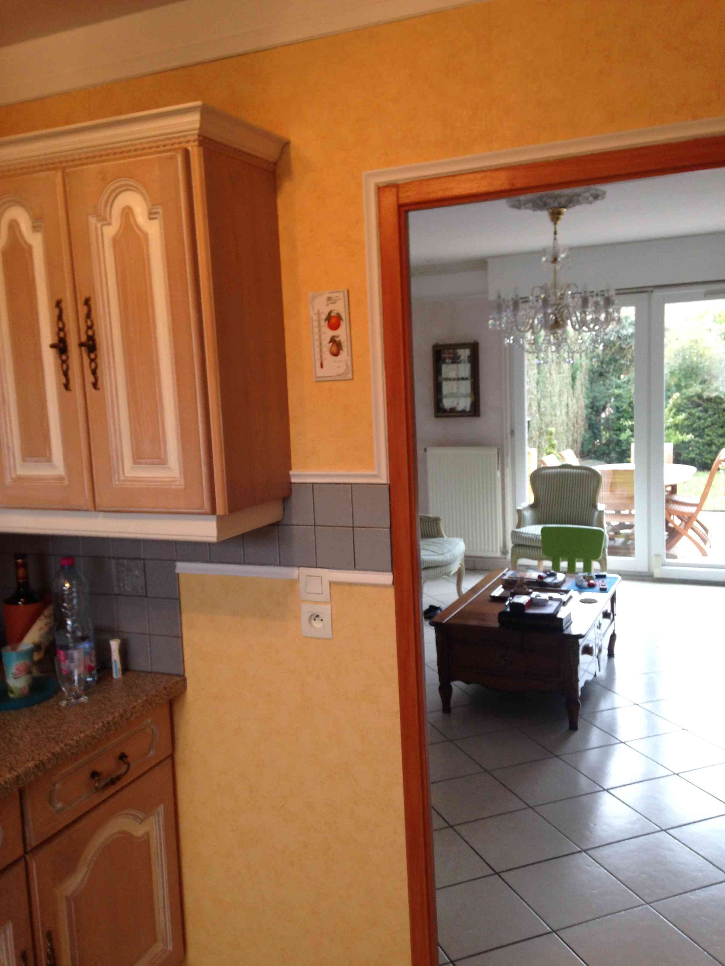 Transformation d'un séjour cuisine (Lomme) La cuisine, sombre et encombrée avait besoin d'ouverture sur le séjour pour faire traverser la lumière et être integrée à la pièce de vie. Le couloir d'entrée a également été ouvert sur la cuisine et le séjour pour plus de fluidité.