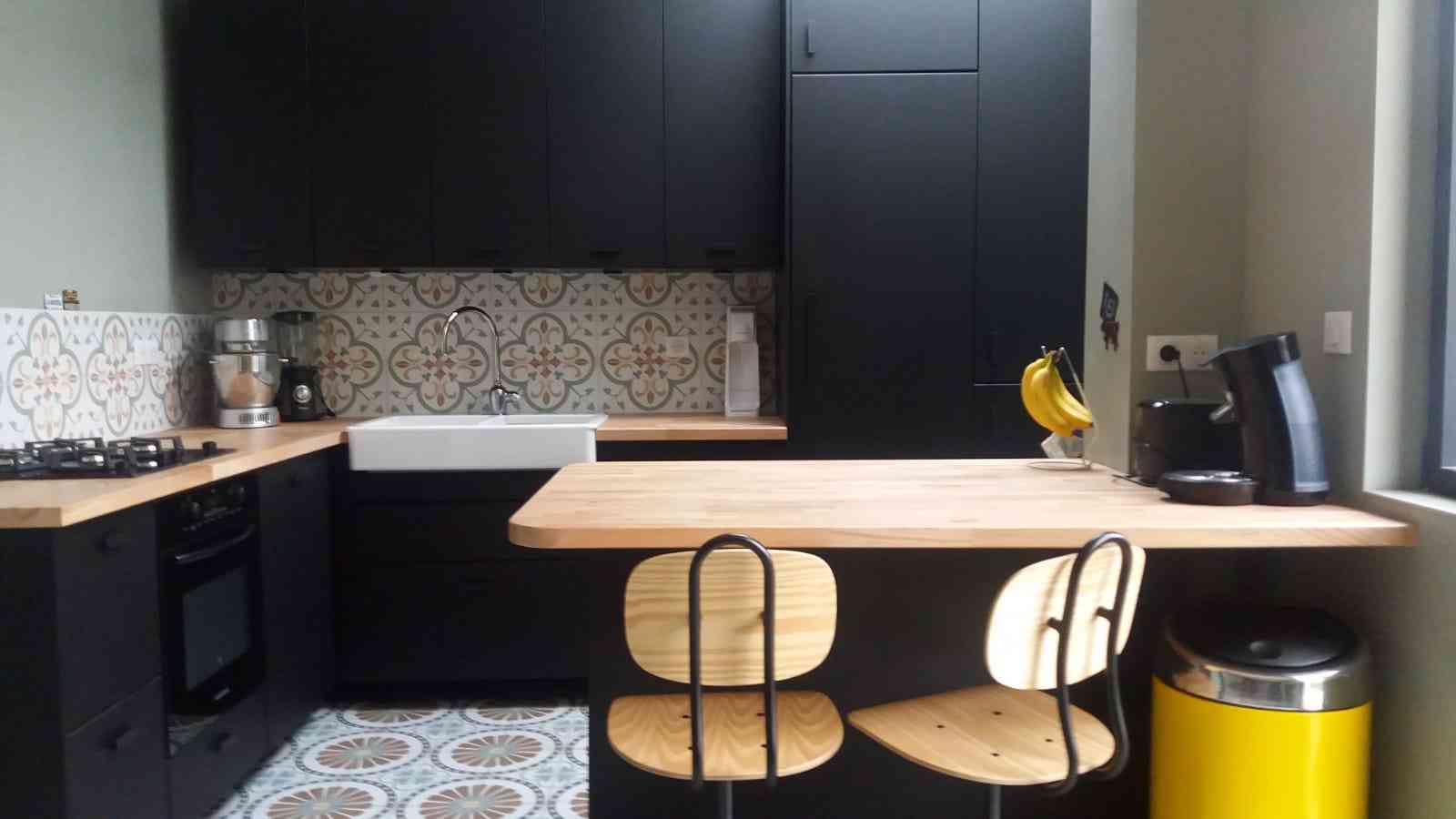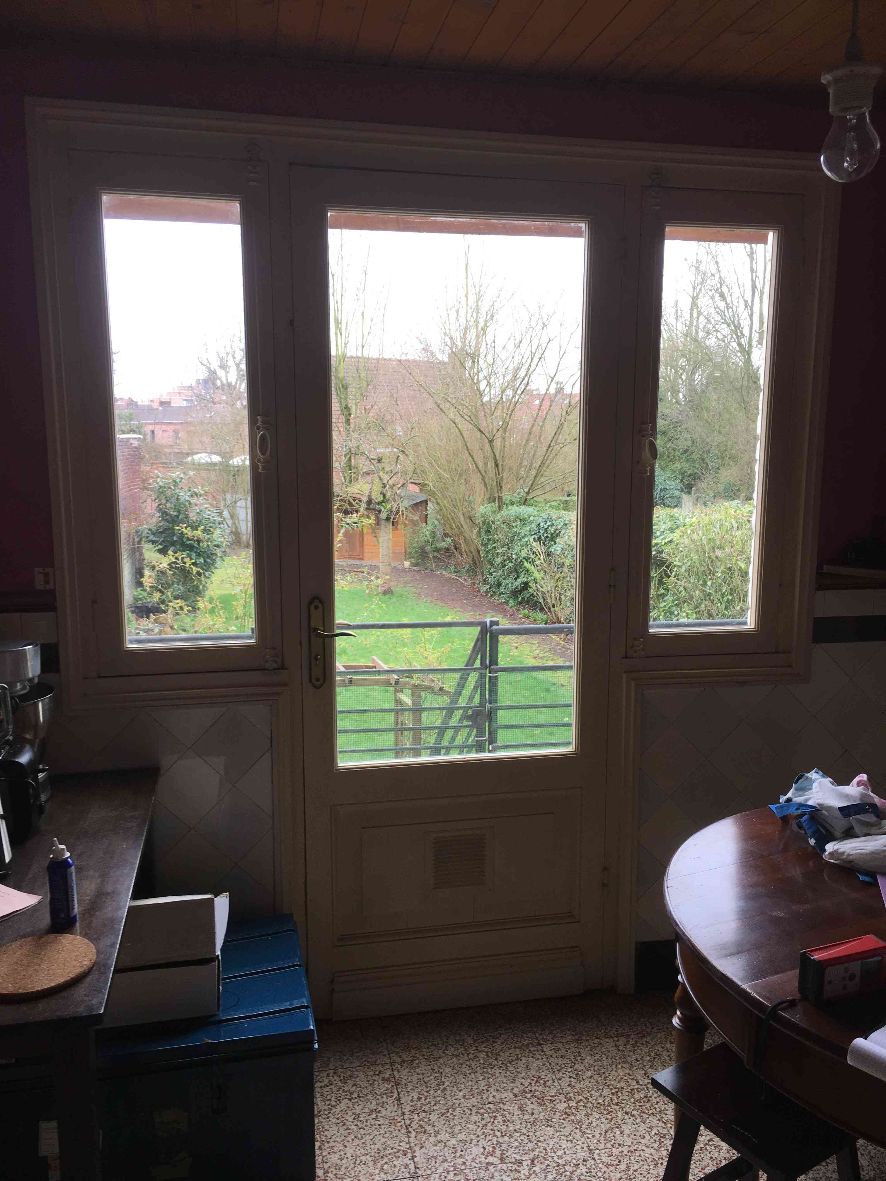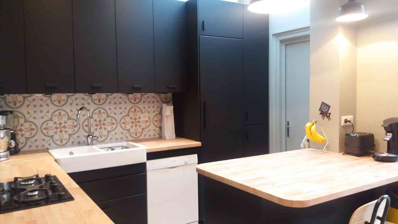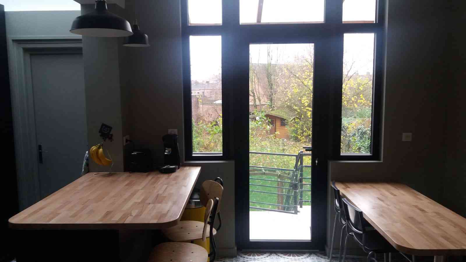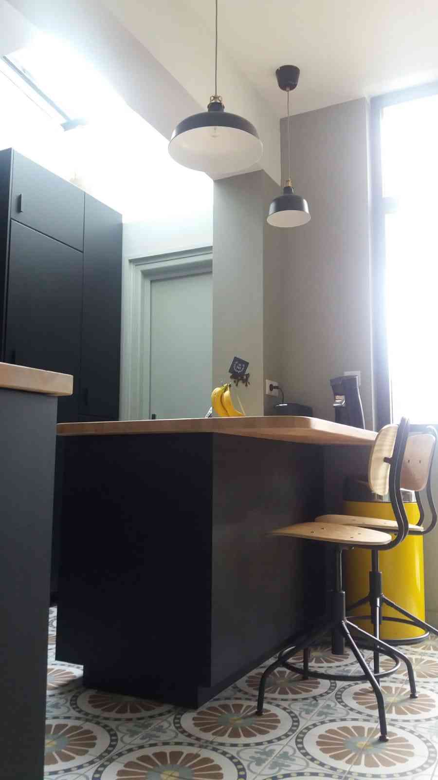 particuliersLa cuisine était coupée en deux par un mur porteur. Un rais de lumière filtrait par les tôles plastiques d'une ancienne verrière. Il fallait faire circuler la lumière et ouvrir la cuisine tout en conservant le charme de cette ancienne maison. Le mur central a été démoli au maximum. La toiture terrasse a été refaite, ouverte sur une belle verrière en aluminium anthracite. les portes semi vitrées sur le jardin ont été remplacées par des portes vitrées toute hauteur. Des carrelages dans l'esprit des carreaux ciments de la maison ont contribué au côté chaleureux de cette cuisine alliant l'ancien et le contemporain.