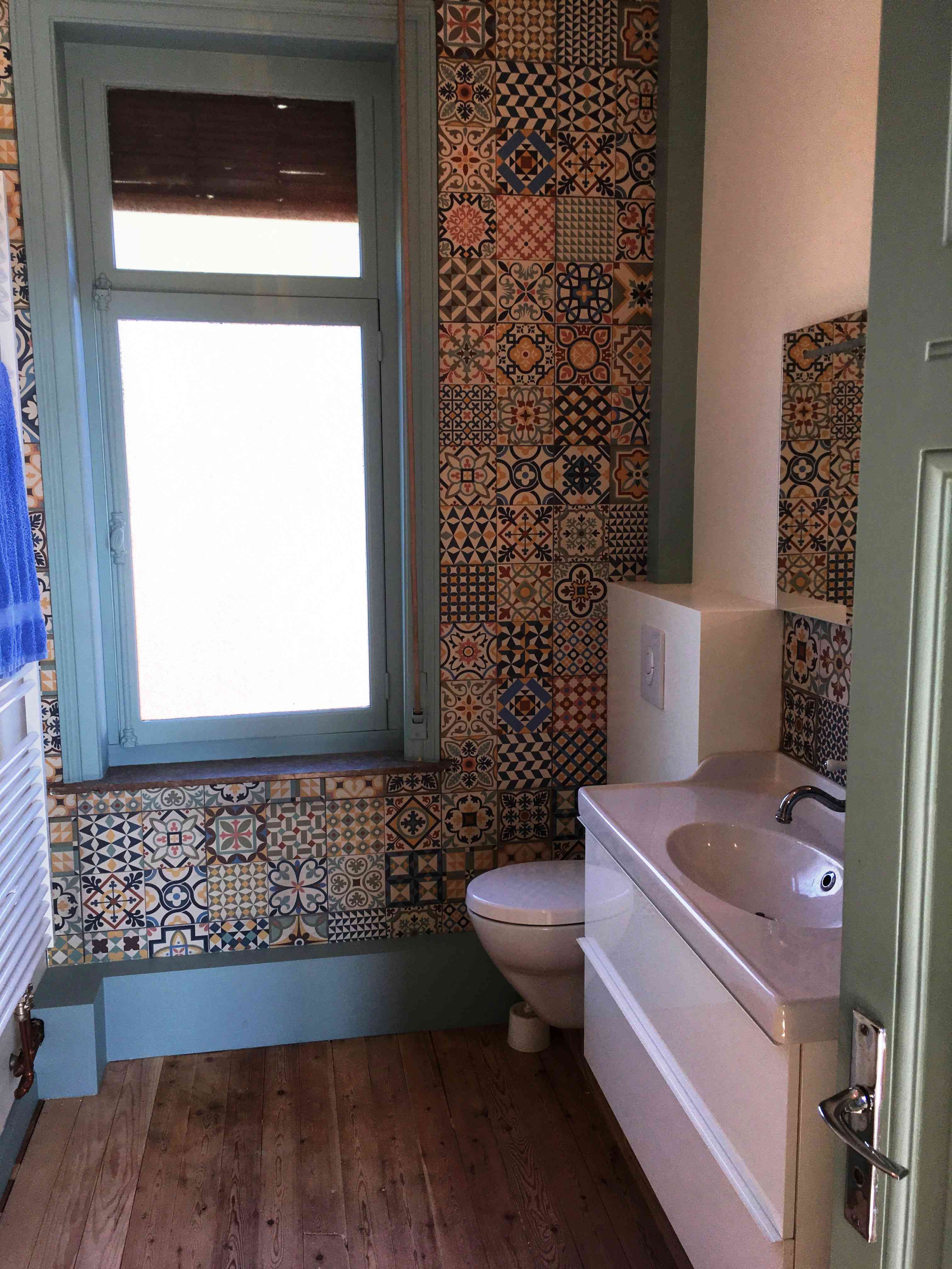 particuliersLe projet consistait à moderniser et agrandir une salle de bains très étroite. Le mur porteur a donc été ouvert sur la grande chambre voisine pour accueillir une douche confortable ainsi qu'une niche pour la machine à laver tout en dégageant l'espace.