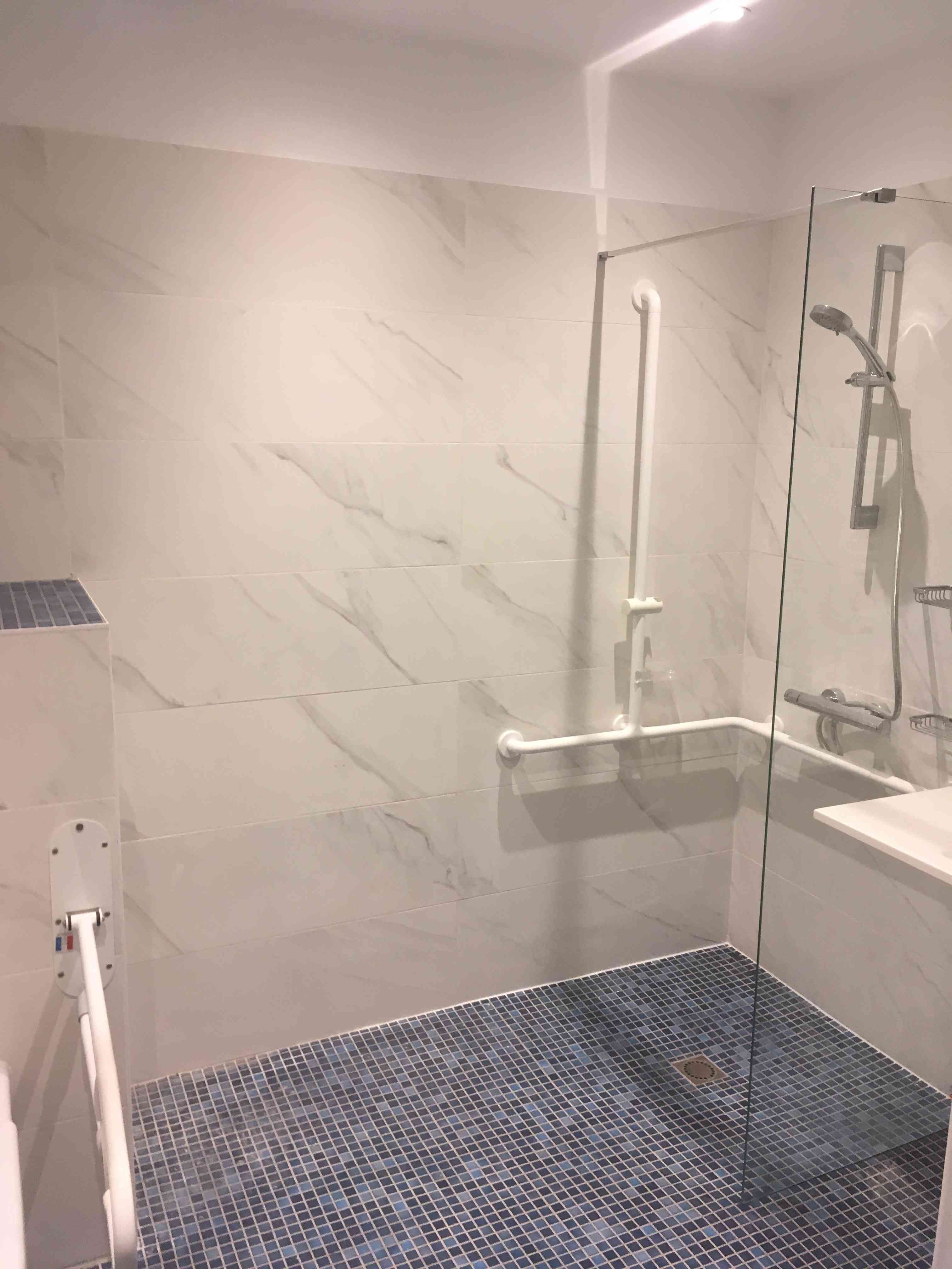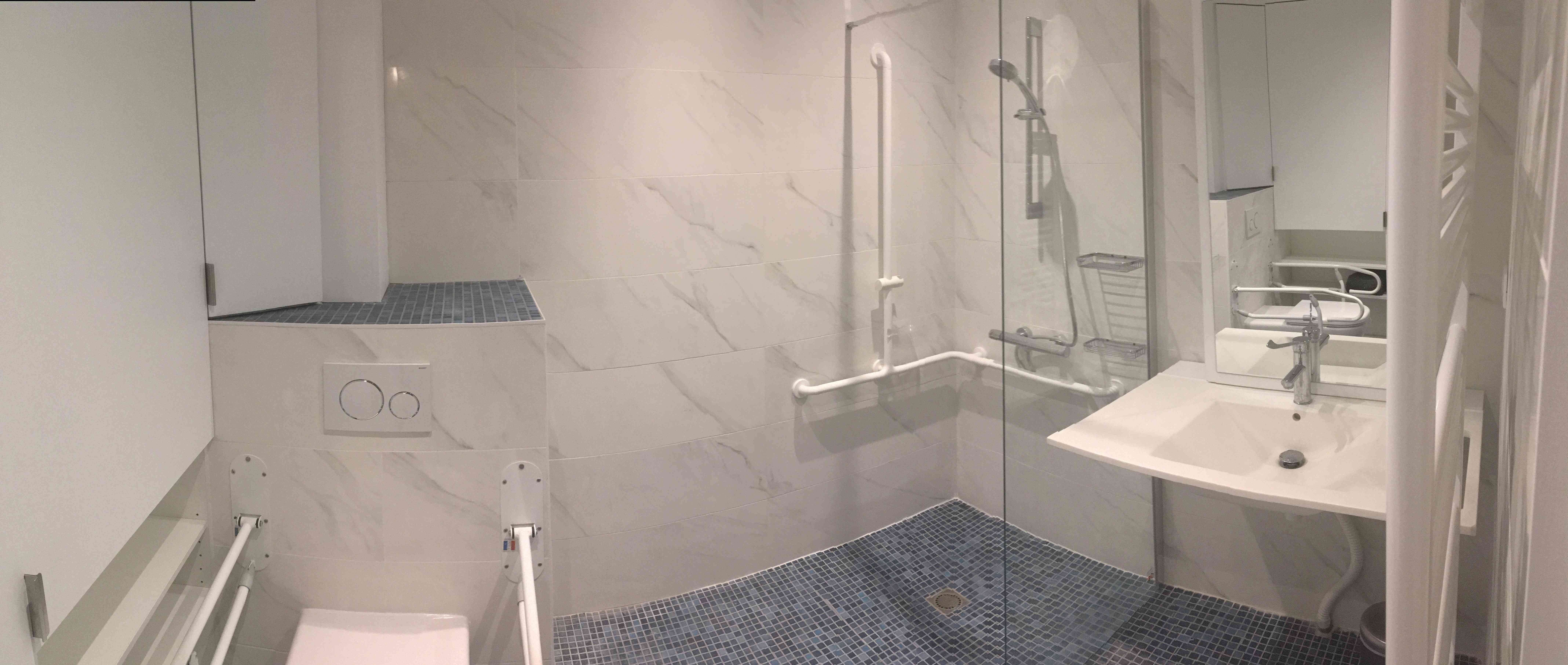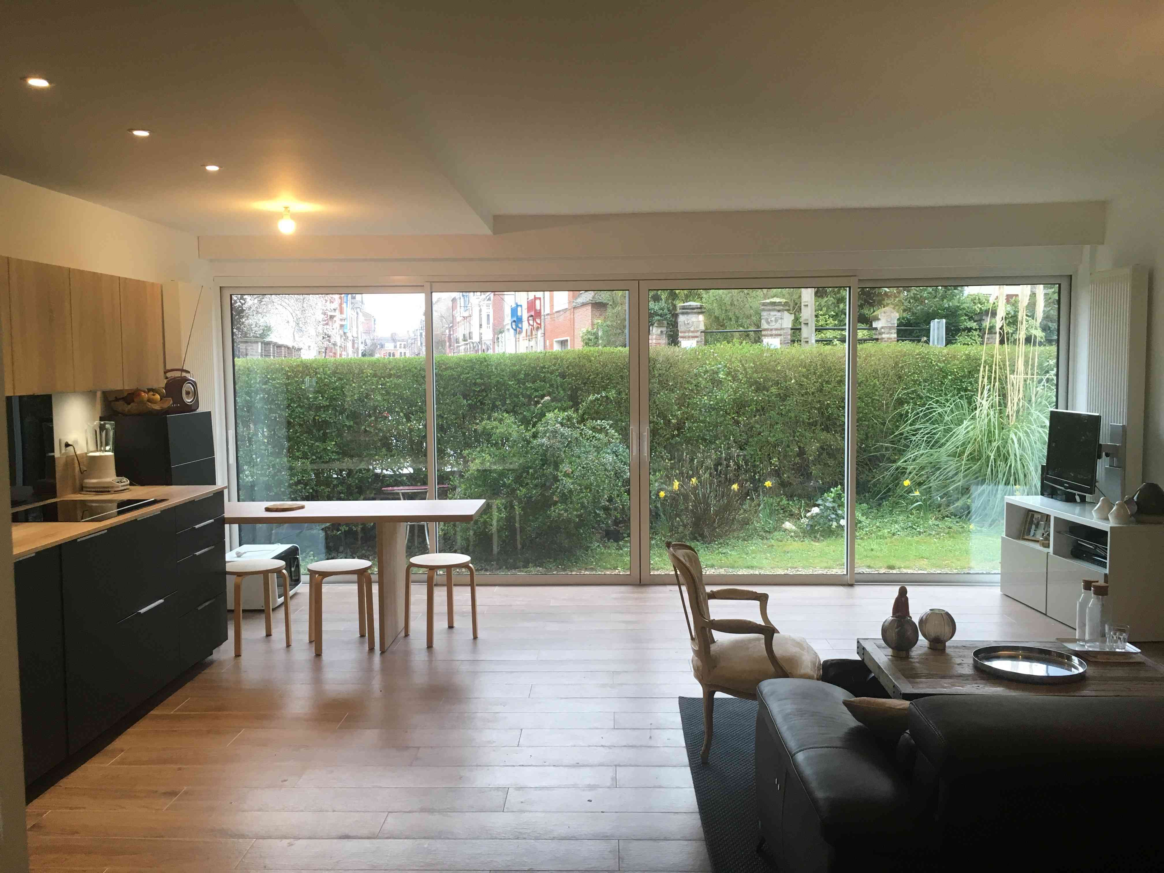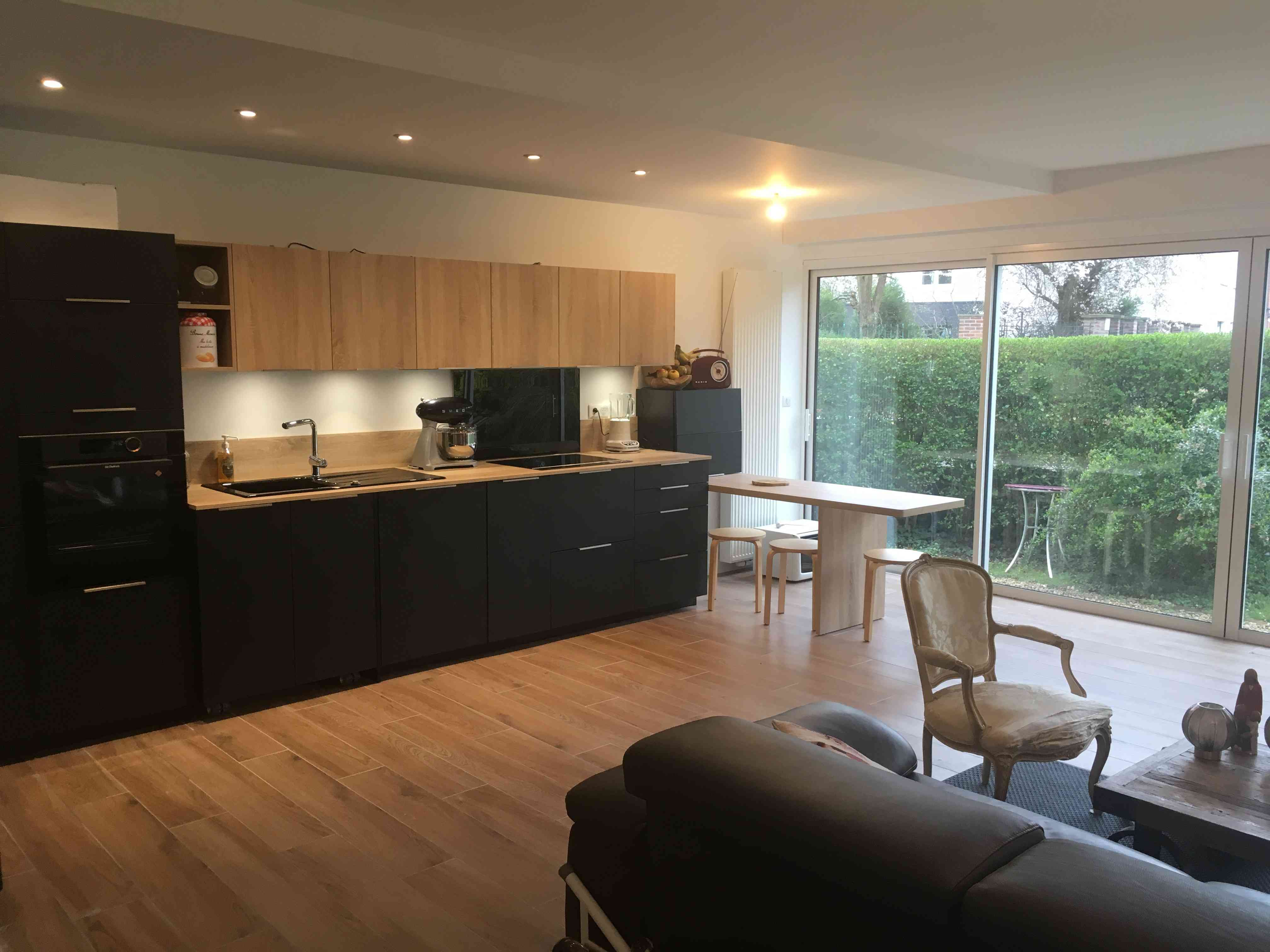 particuliersCette ancienne loge de concierge de plain-pied comportait une partie accueil avec un accès indépendant, des couloirs, une cuisine étroite, une petite salle de bains. Ouvrir les espaces a été la priorité pour faciliter les déplacements en fauteuil roulant. Les baies vitrées ont été remplacées en supprimant les ressauts pour rendre le jardin accessible. Les cloisons ont été supprimées entre cuisine et séjour. Le coin nuit a été séparé du coin jour par des grands placards et une porte coulissante rendant le passage fluide. La salle de bains parentale a été agrandie et adaptée au fauteuil roulant, et un 2e cabinet de toilettes a été créé pour les enfants.
