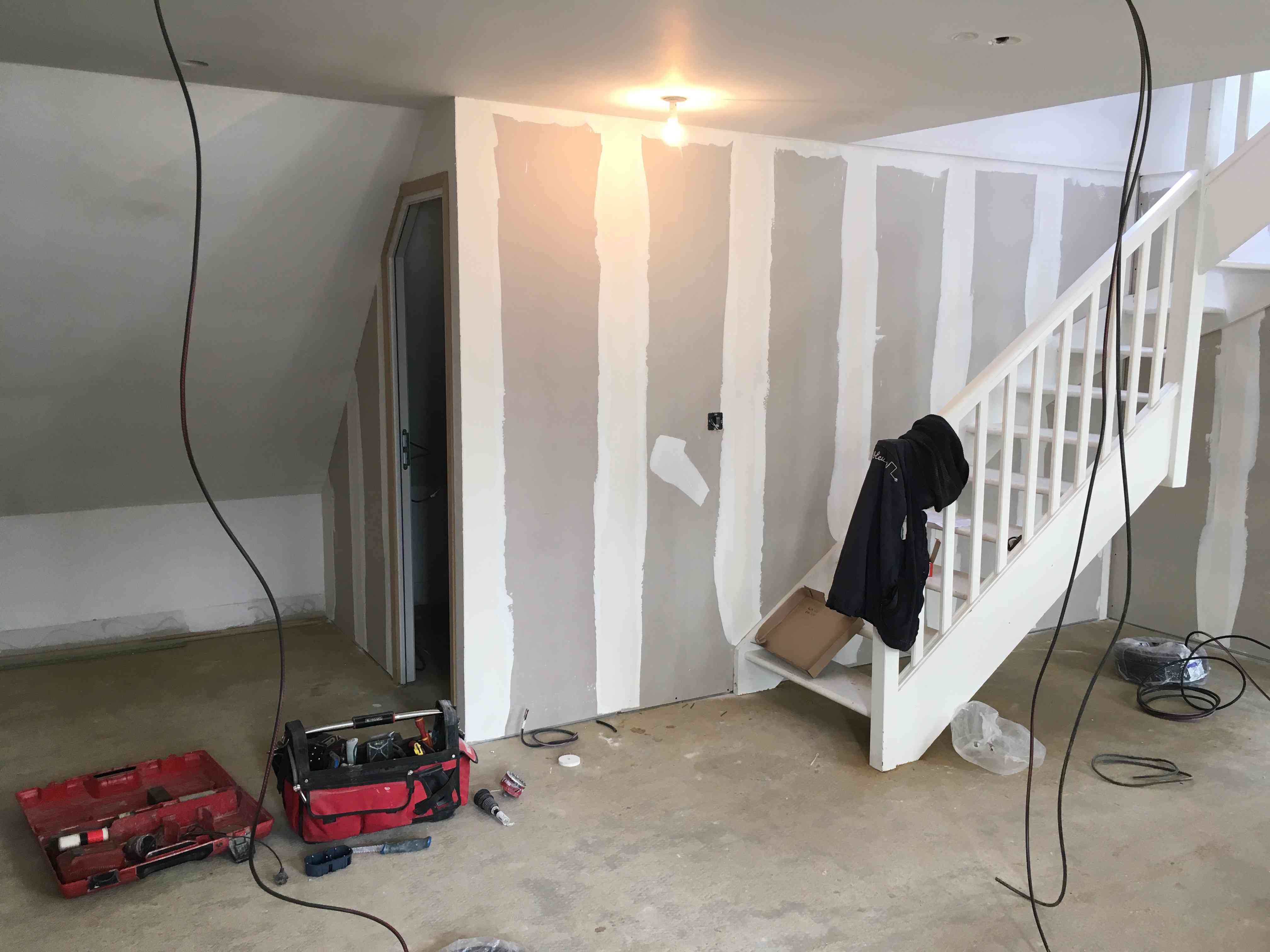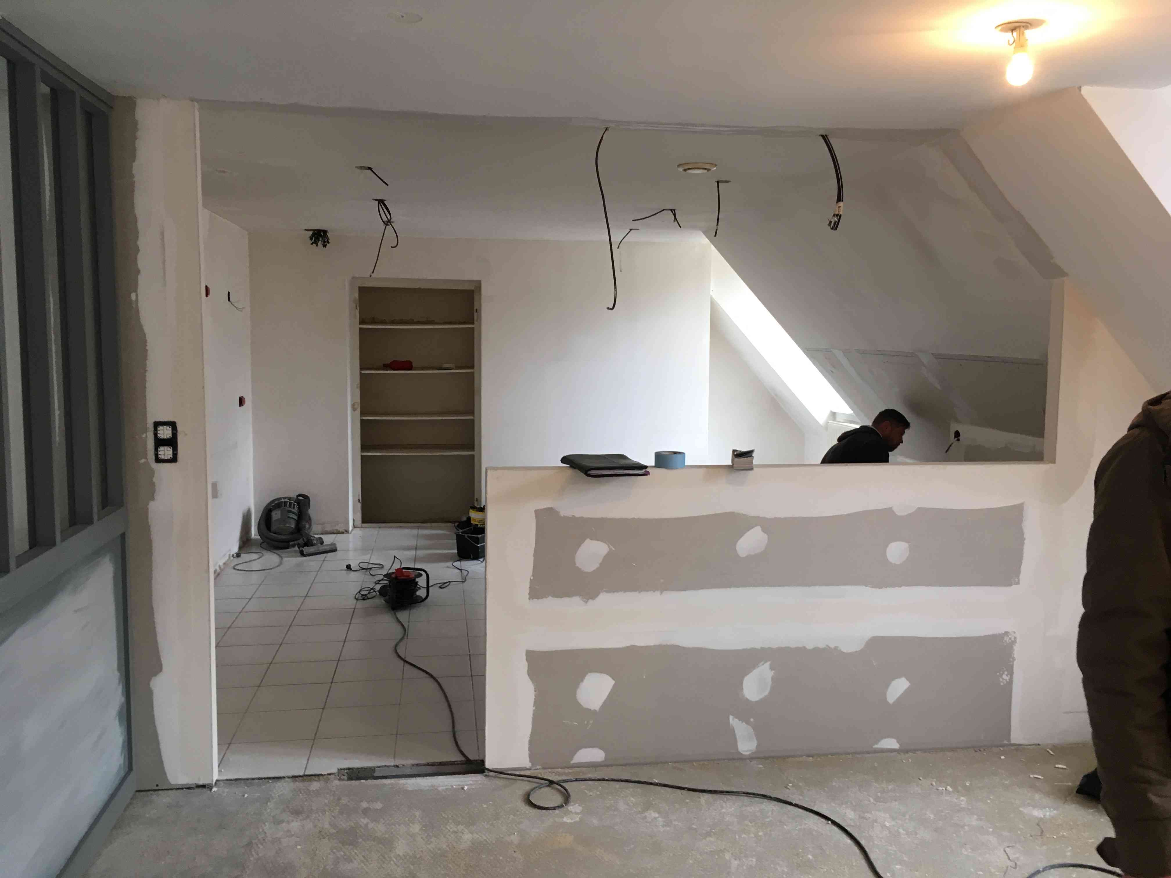 particuliersLe loft disposait d'une grande pièce à vivre ouverte directement sur l'escalier provenant de l'entrée et barré par un escalier menant aux chambres. La cuisine etait fermée et sombre. Les espaces ont été redistribués: création d'une entrée, d'une chambre, d'une pièce de rangement et d'un atelier de peintre avec sa réserve attenante. L'escalier, adossé aux nouvelles cloisons, a trouvé sa place dans l'espace. La cuisine a été ouverte pour plus de conviavialité et de luminosité et totalement refaite. Les éclairages ont été revus et équipés de variation pour une modulation à l'infini. Un beau parquet a été posé rendant l'ensemble particulièrement chaleureux.