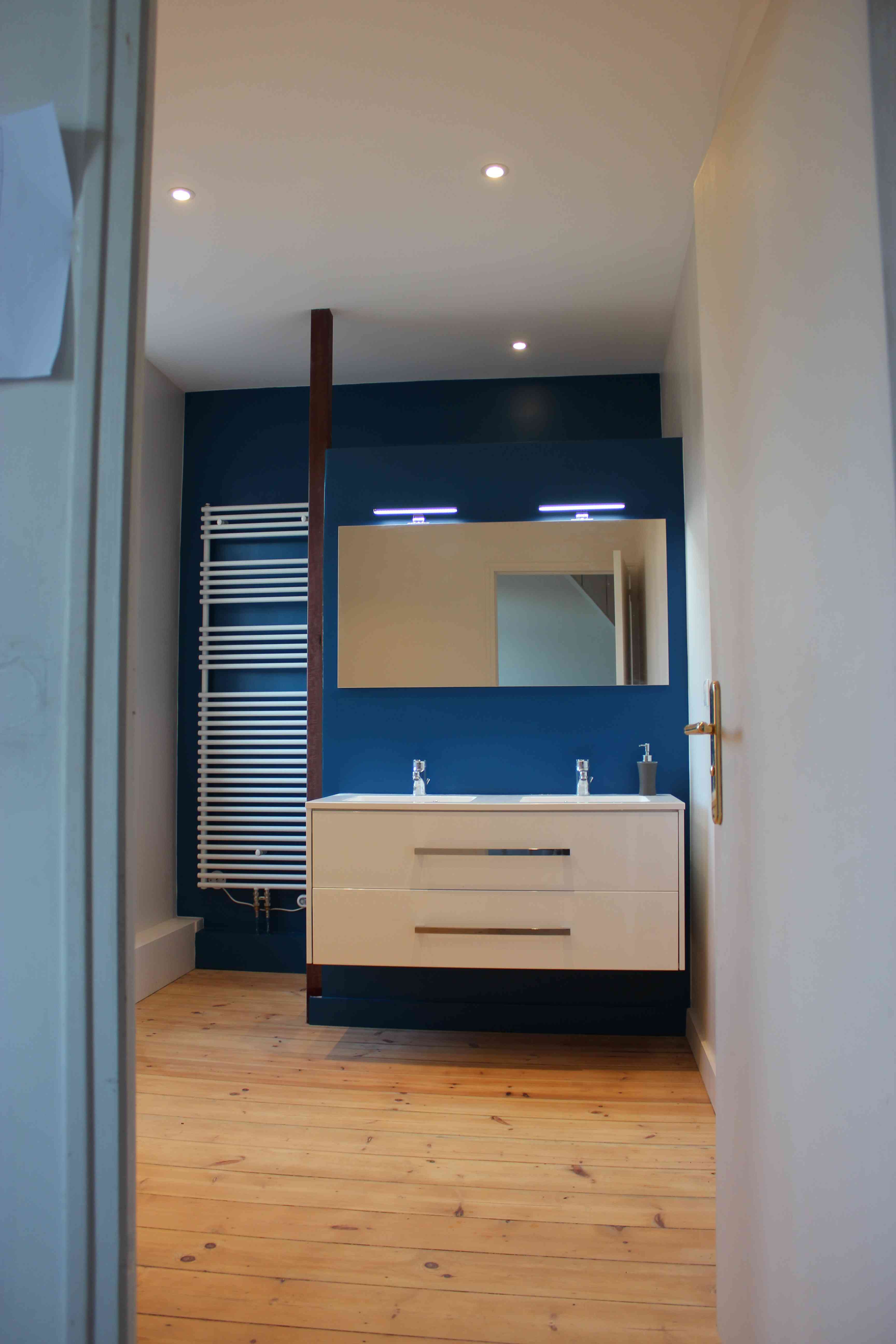 La salle de bains enfants a été restructuré avec un grand espace rangement et un coin buanderie.